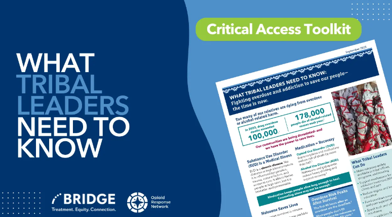 The Public Health Institute’s Bridge program connects emergency care and community health to create an integrated system that improves health and equity. Produced with support from the Opioid Response Network, this Critical Access Toolkit was developed by experts in addiction medicine for clinicians, emergency medical services providers, hospital administrators, tribal leaders and people affected by substance use disorder, including opioid use disorder.